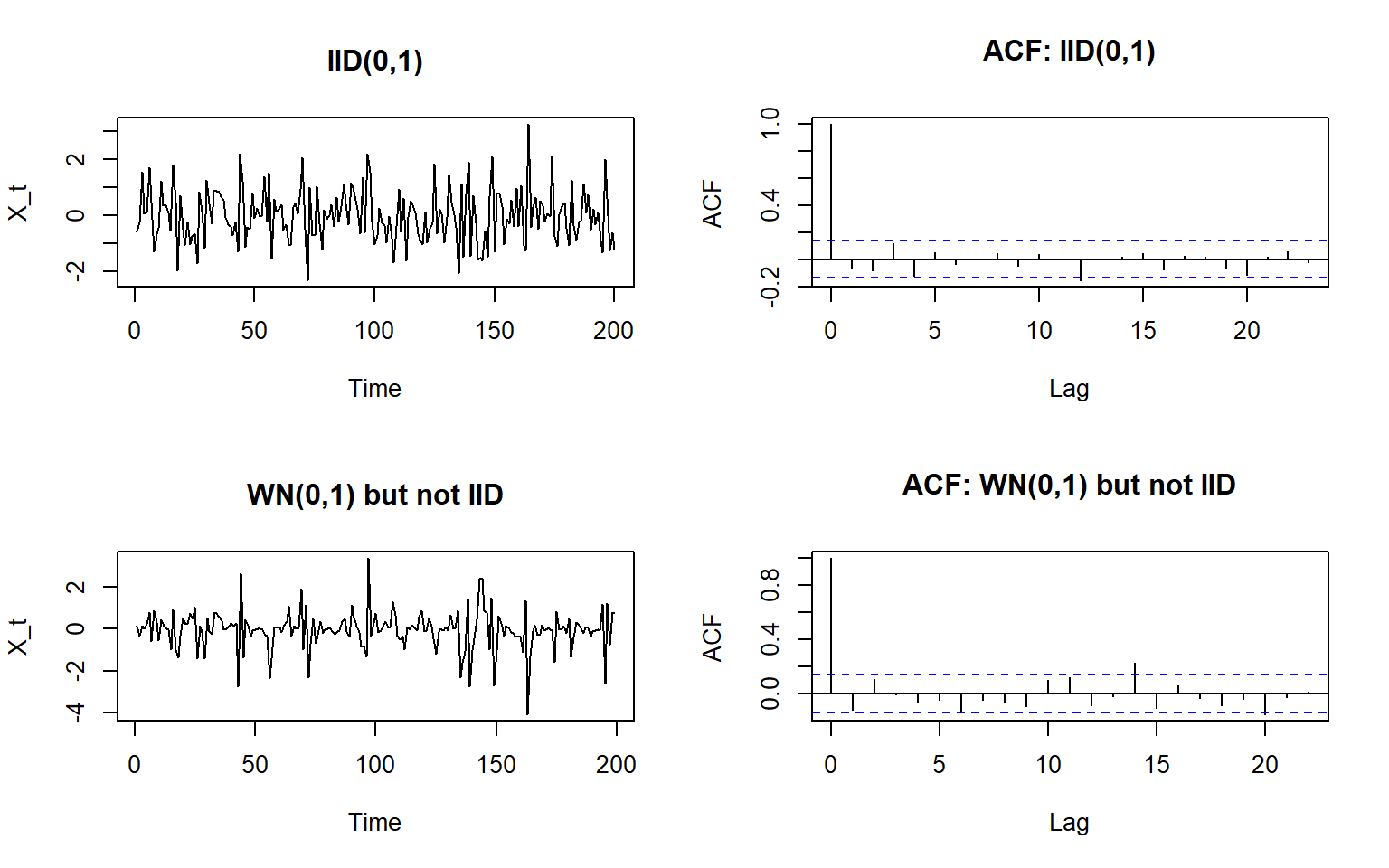IID(0, \sigma^2) \;\;\Rightarrow\;\; WN(0, \sigma^2).