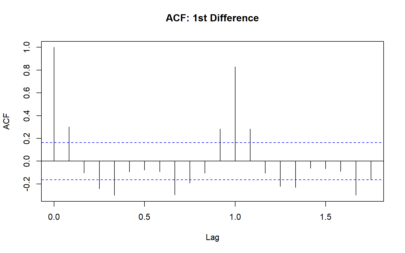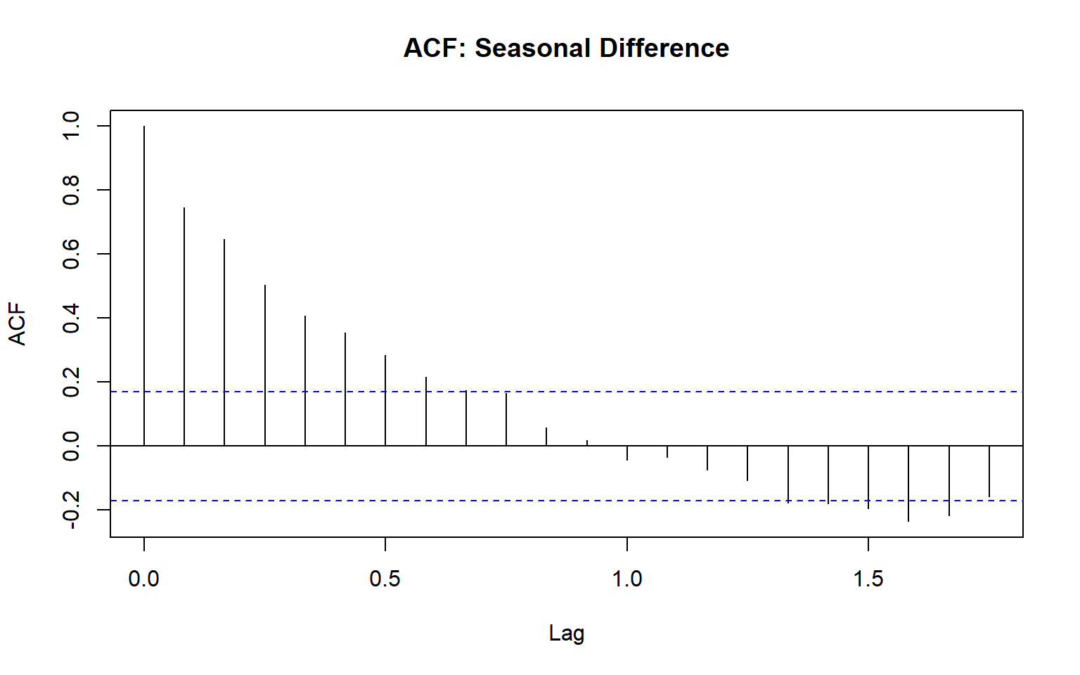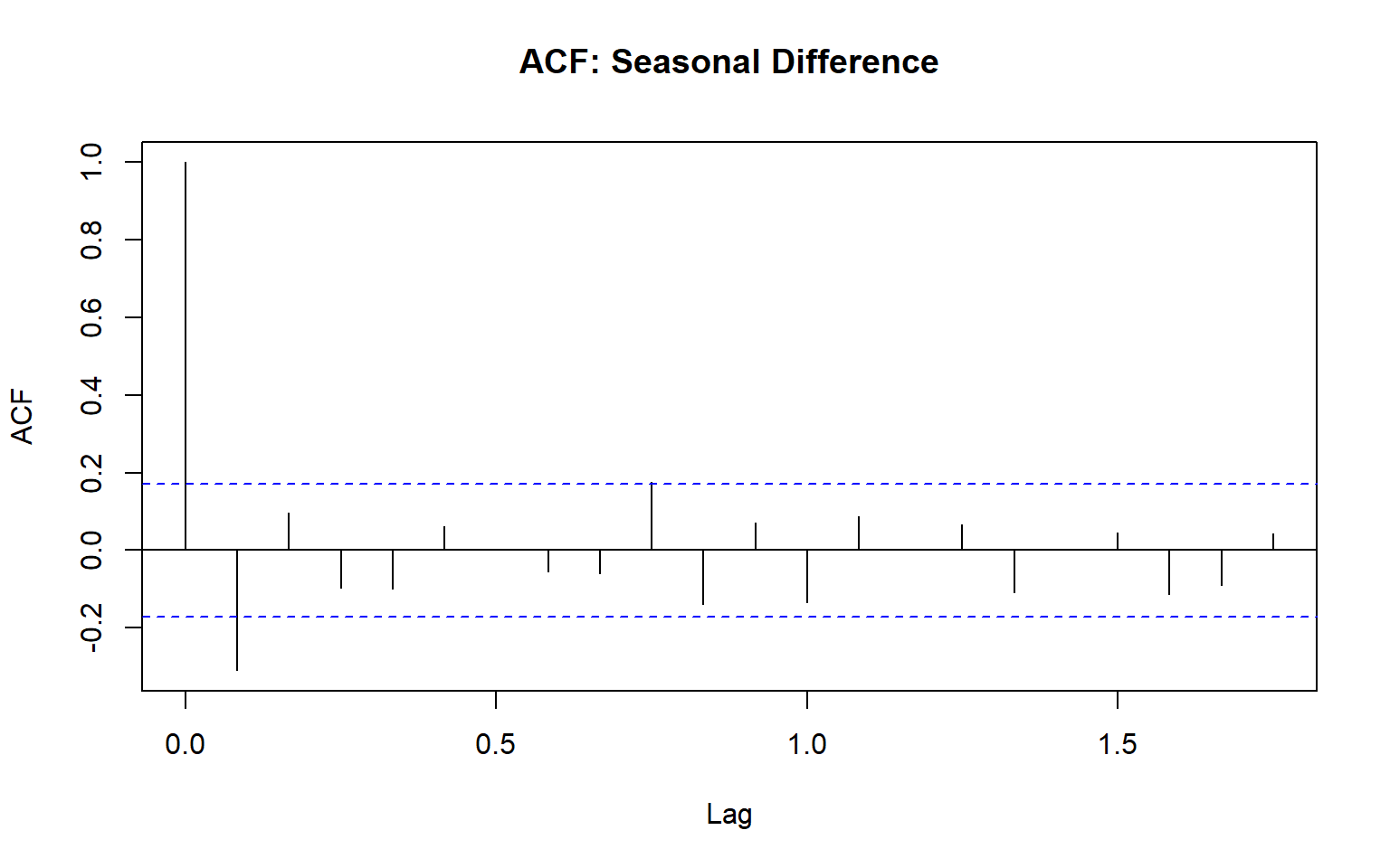 acf(diff_seasonal, main = "ACF: Seasonal Difference")