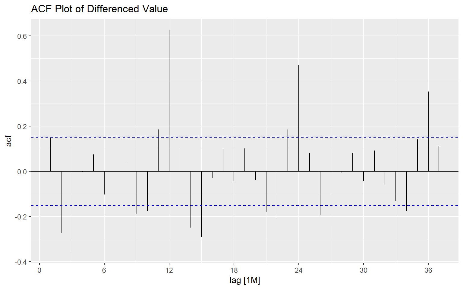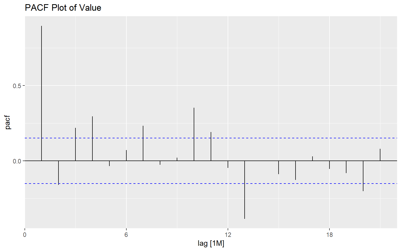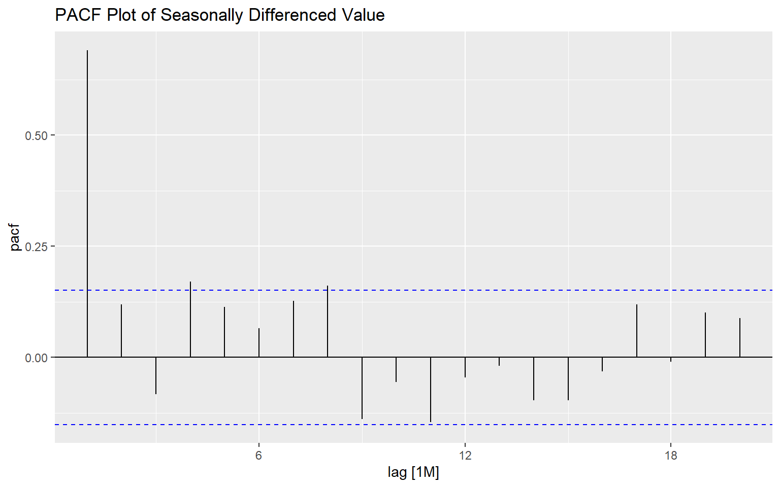 labs(title = "PACF Plot of Seasonally Differenced Value")