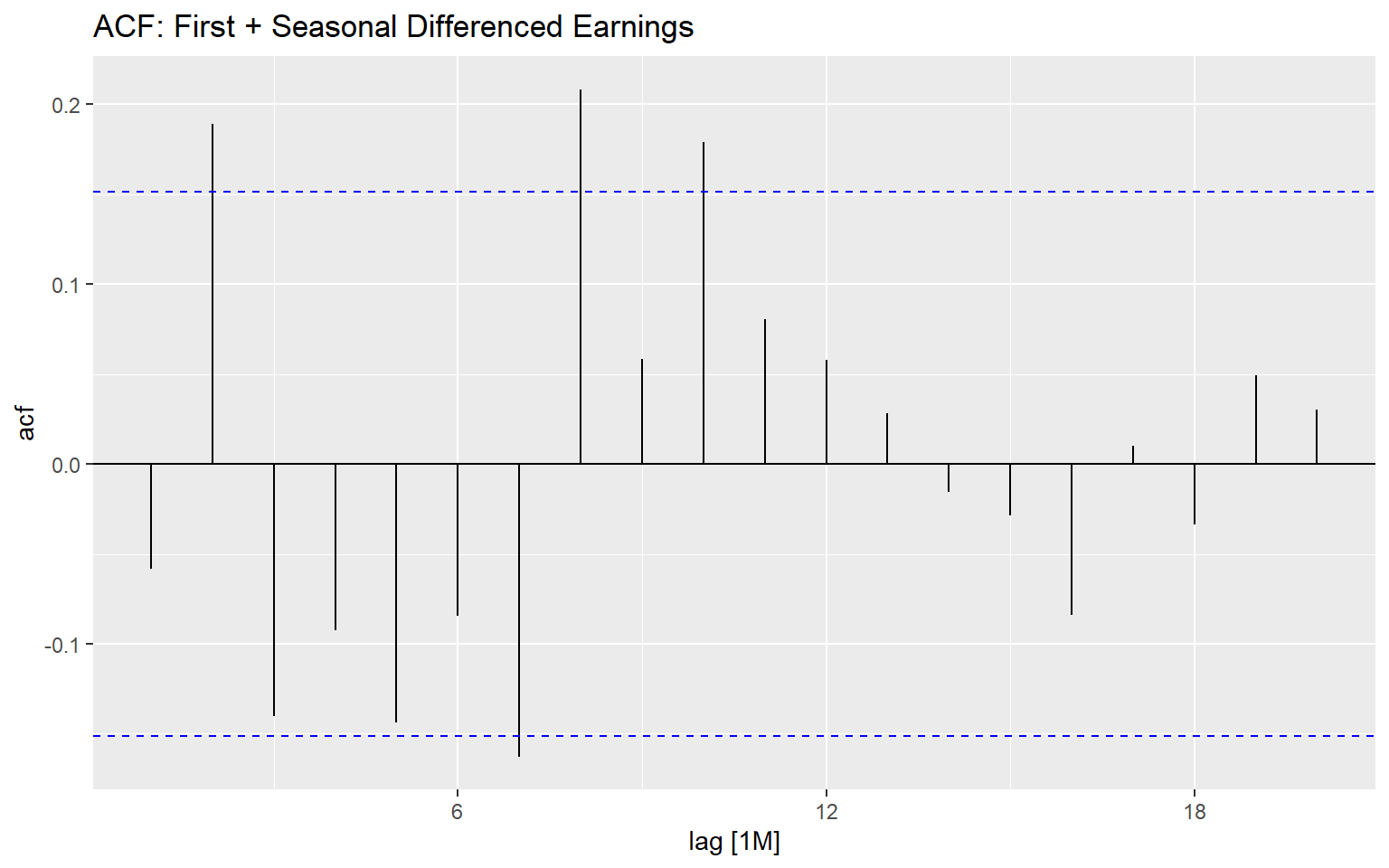 labs(title = "ACF: First + Seasonal Differenced Earnings")