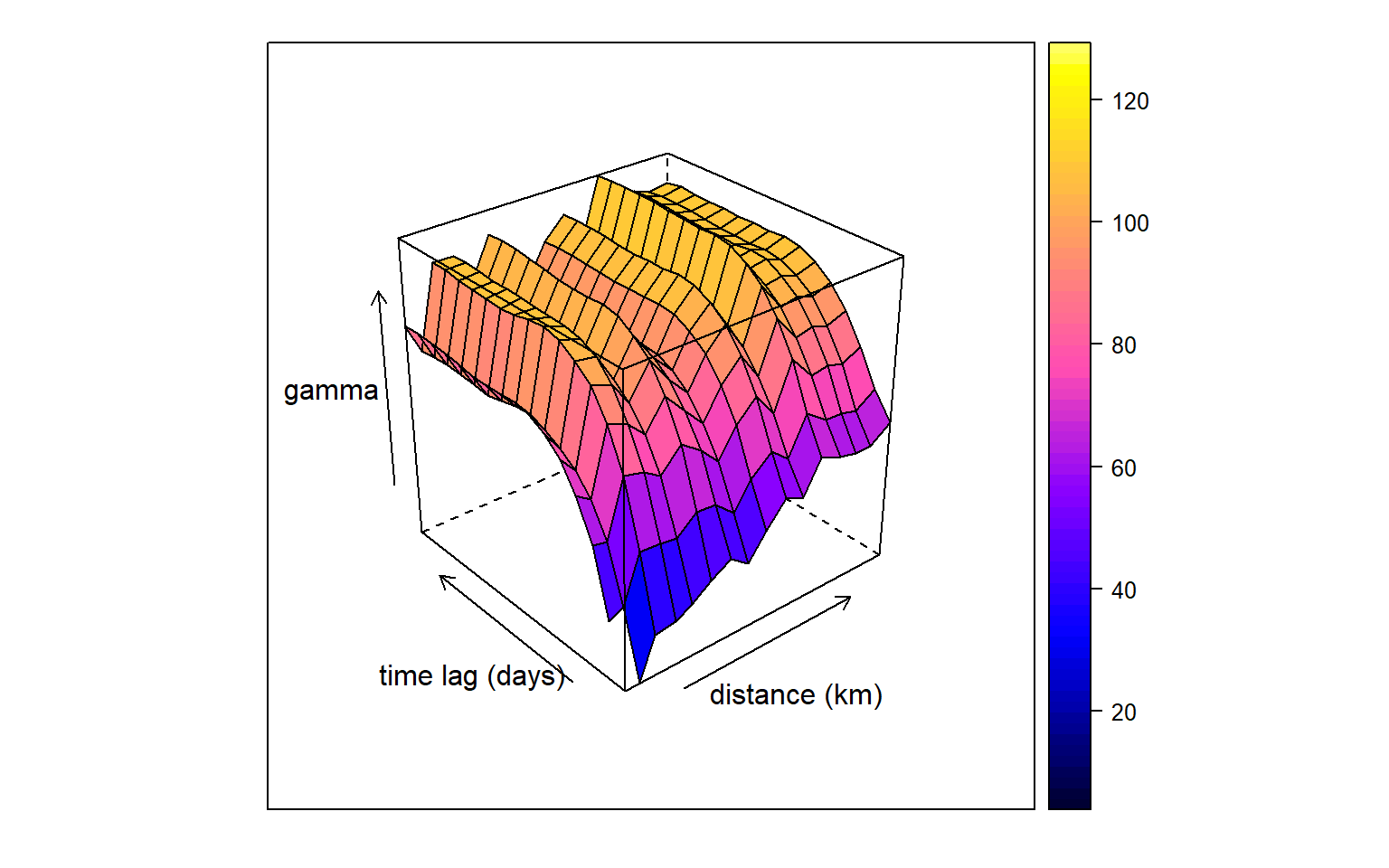 “How spatial dependence behaves when observations are separated by a specific amount of time.”