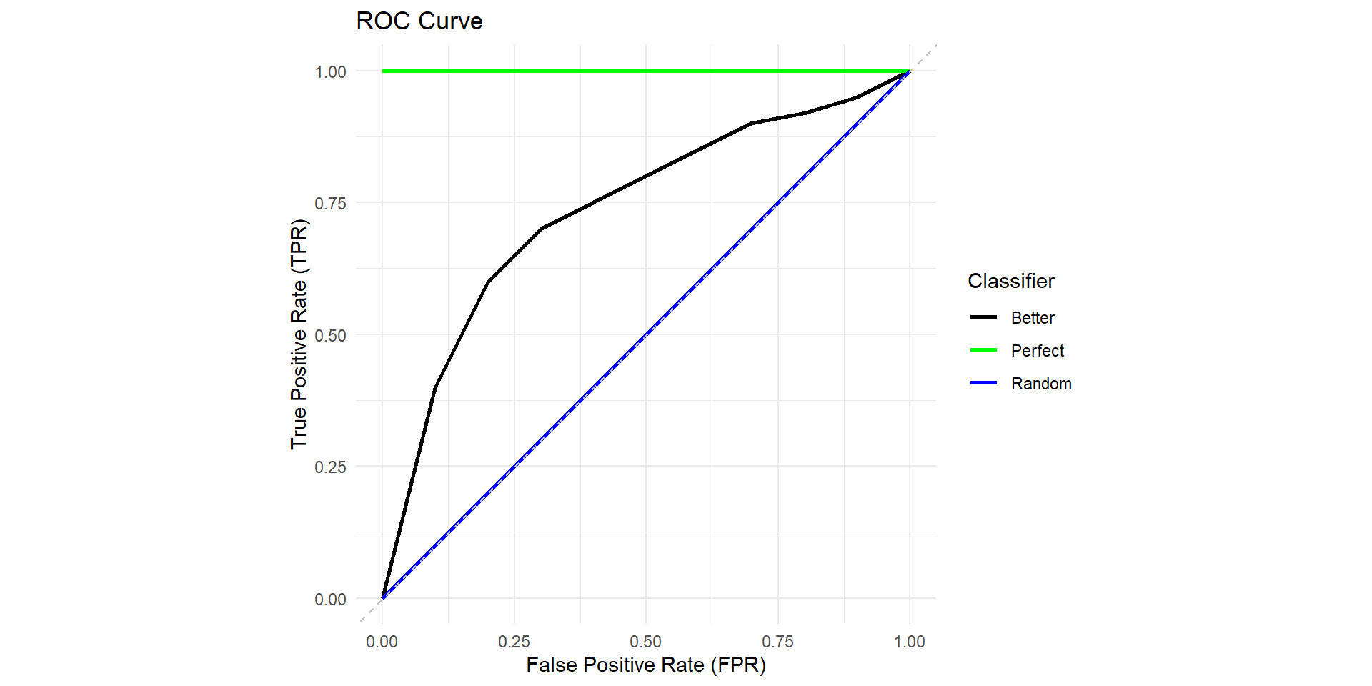 Random classifier: \(AUC = 0.5\)