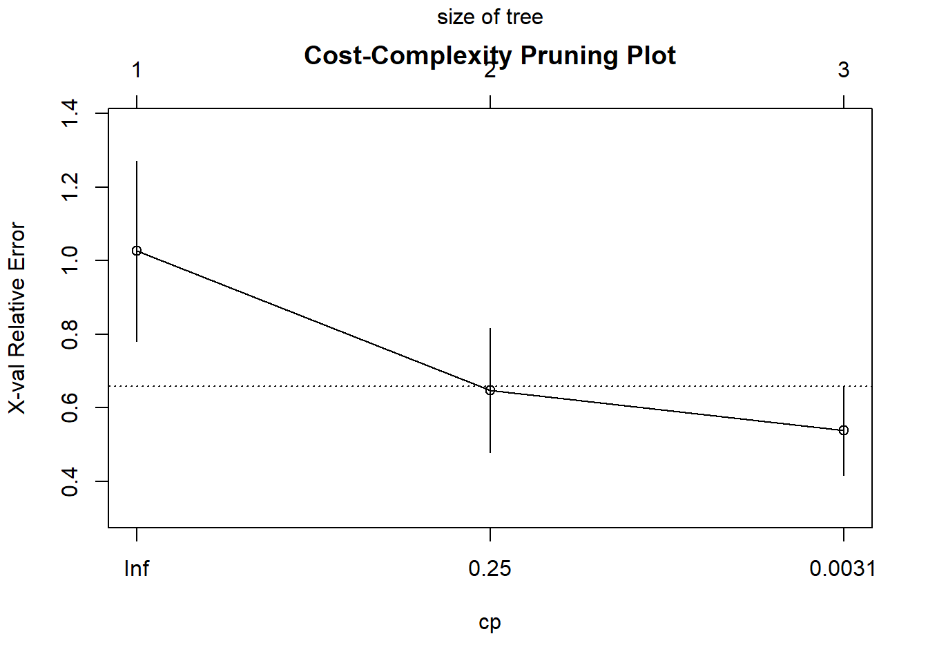 plotcp(full_tree, main = "Cost-Complexity Pruning Plot")