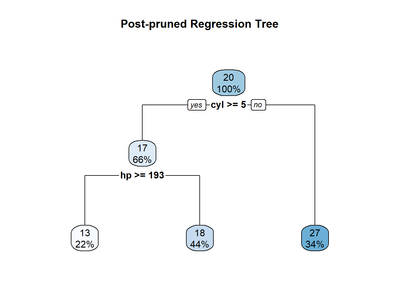 rpart.plot(pruned_tree, main = "Post-pruned Regression Tree")