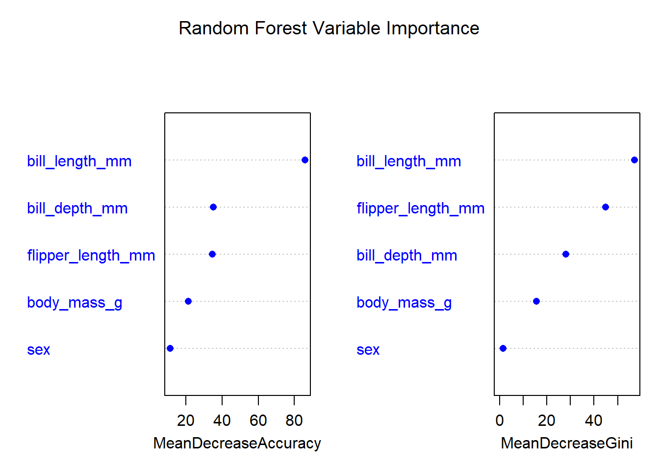 importance(rf_model) Adelie Chinstrap Gentoo MeanDecreaseAccuracy