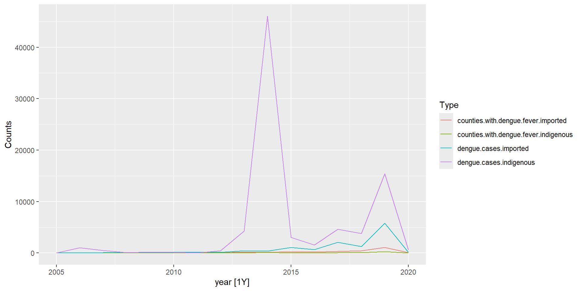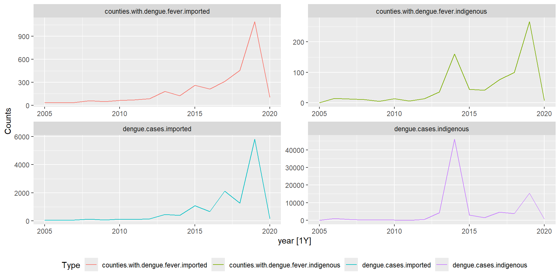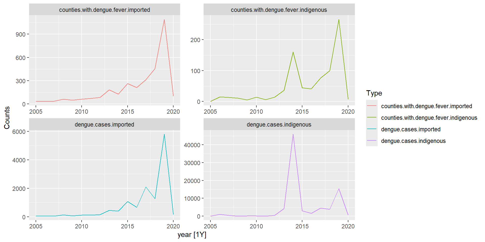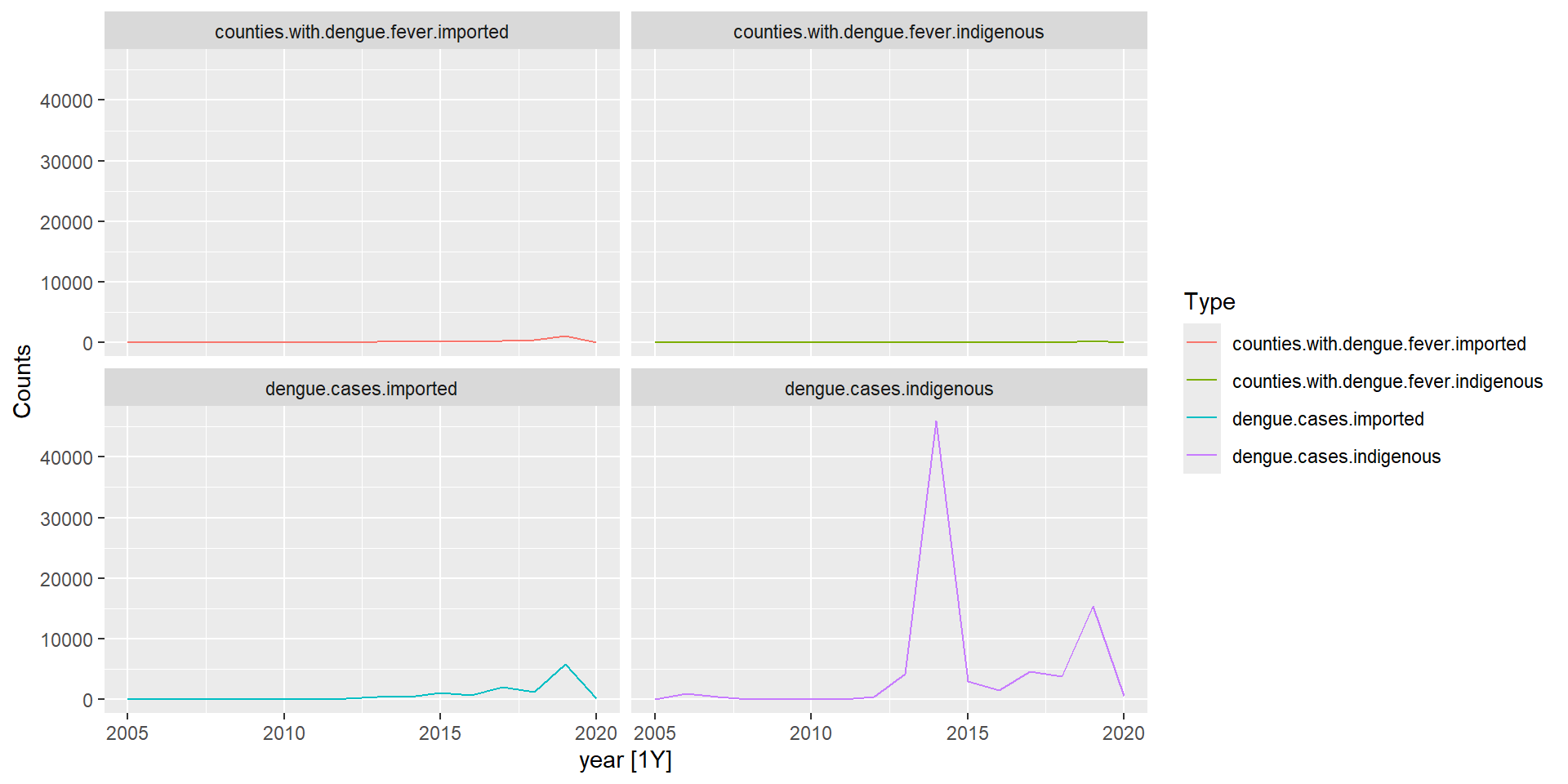 # ℹ abbreviated name: ¹counties.with.dengue.fever.indigenous