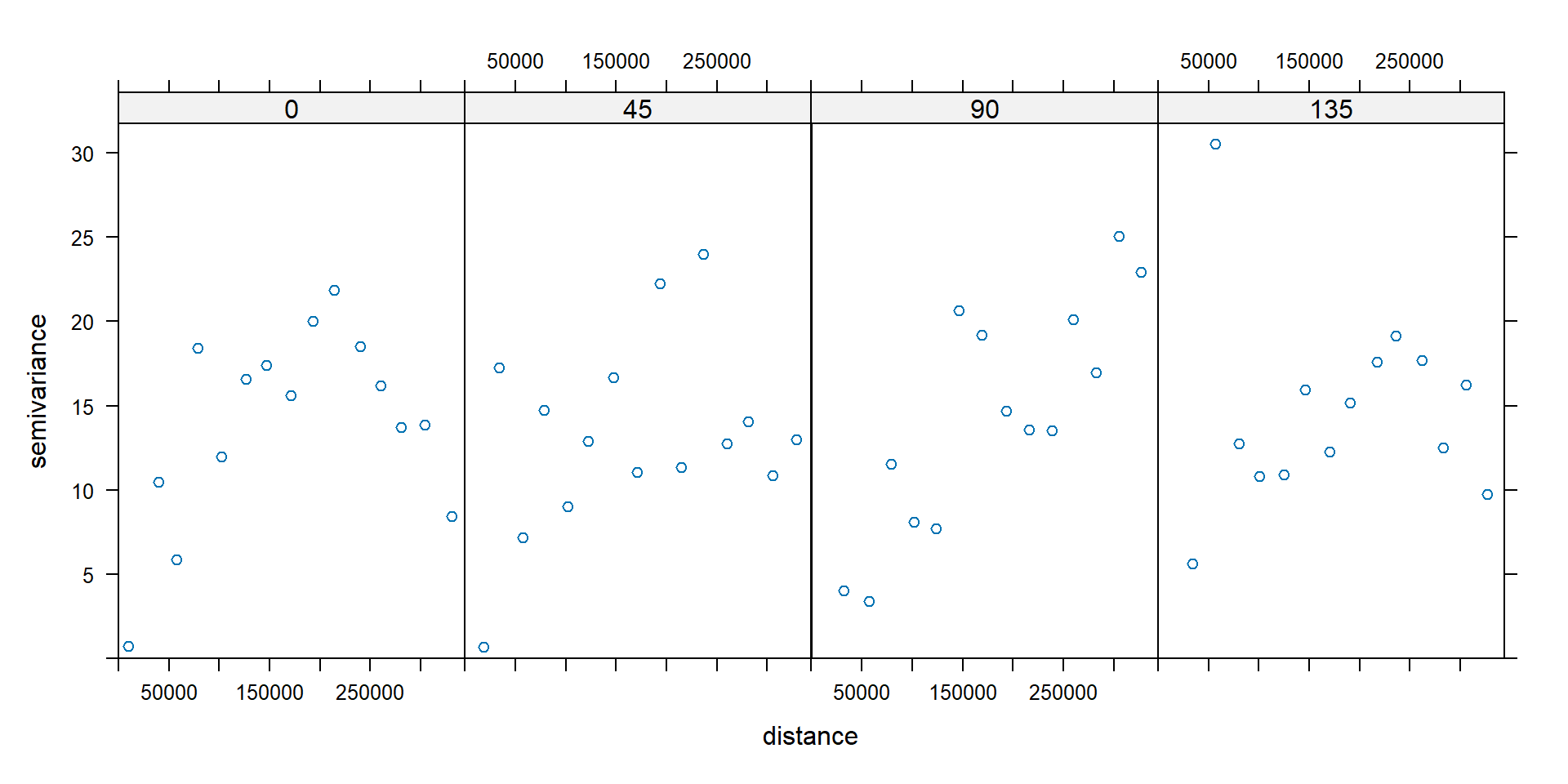 v1.ani.rk <- variogram (NO2~ station_altitude, alpha = c (0 , 45 , 90 , 135 ), no2.sf)