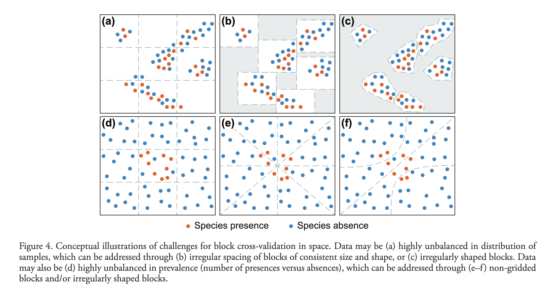 Source: Roberts, D. R., Bahn, V., Ciuti, S., Boyce, M. S., Elith, J., Guillera‐Arroita, G., … & Dormann, C. F. (2017). Cross‐validation strategies for data with temporal, spatial, hierarchical, or phylogenetic structure. Ecography, 40(8), 913-929