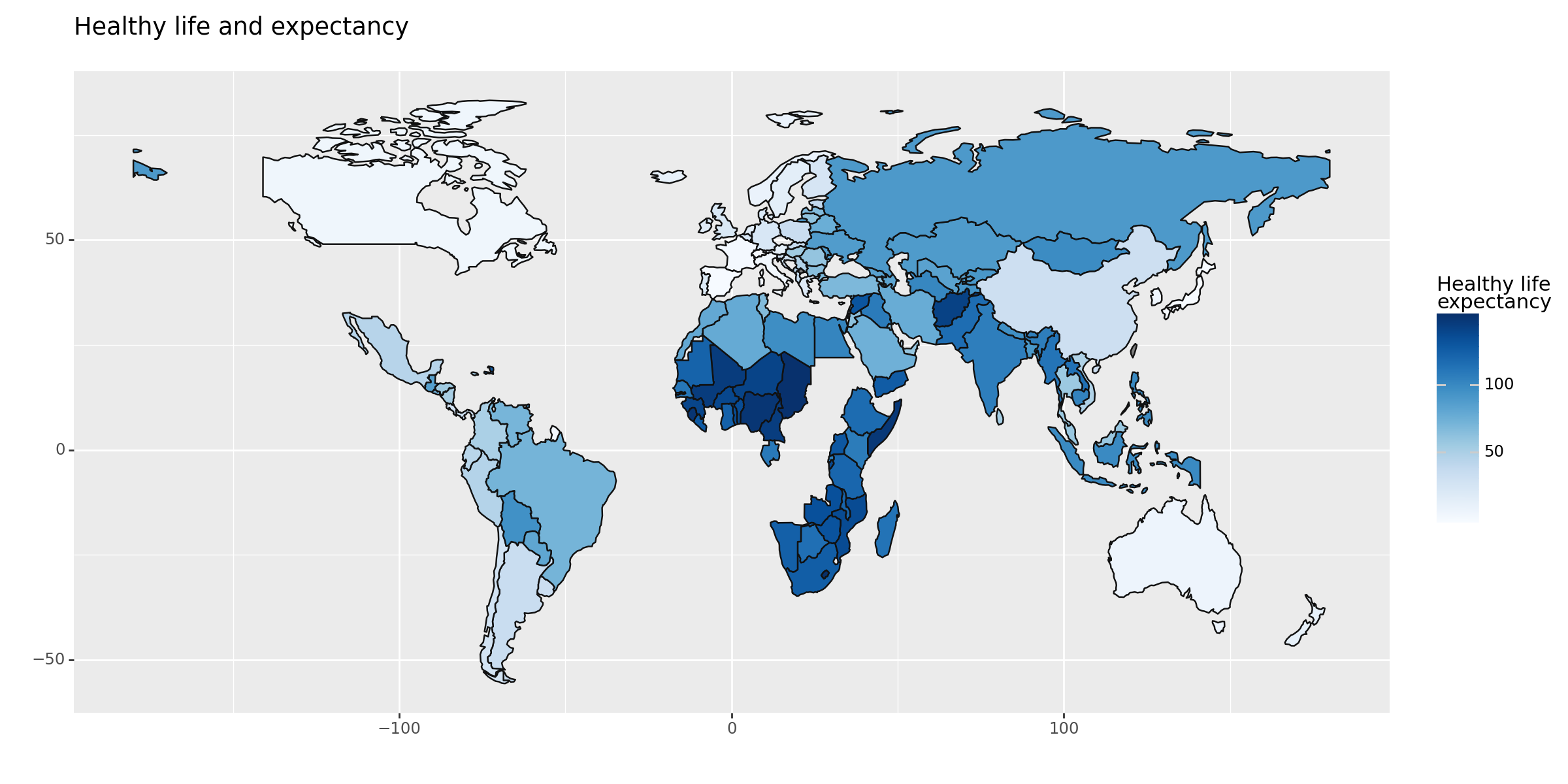 geom_map(aes(fill="Healthy life\nexpectancy", map_id="name", geometry="geometry")) + \